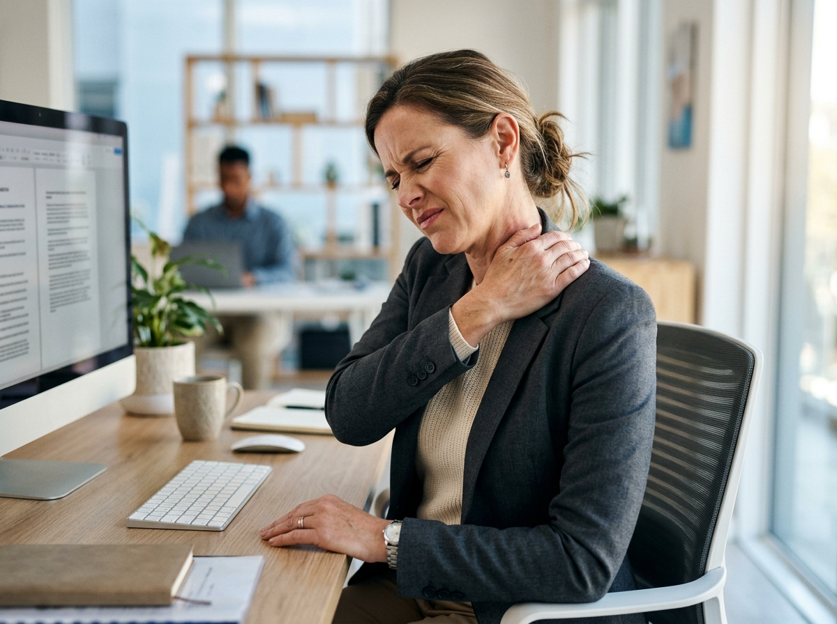 Forward Head Posture (Tech Neck): Anyone noticing a visible curve in their upper back or a protruding neck.